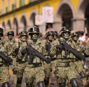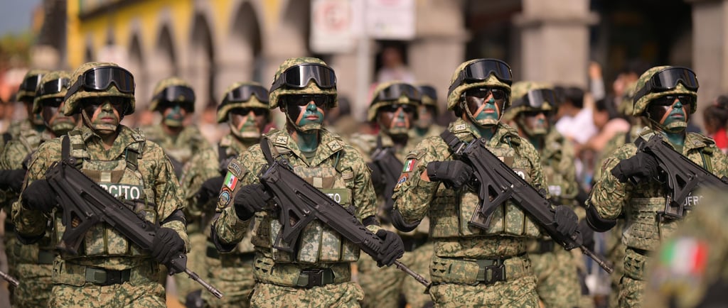 En representación de las fuerzas armadas, 695 elementos del Ejército, la Guardia Nacional y la Armada de México desfilaron con 28 vehículos terrestres, dos embarcaciones, siete binomios canófilos, ocho jinetes montados y una bandera de guerra.