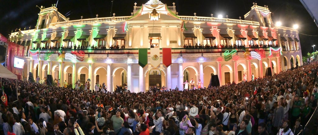 Ataviada con un elegante traje típico de jarocha, confeccionado en Tlacotalpan, la Gobernadora salió al balcón principal alrededor de las 23:09 horas. Con gesto solemne hizo ondear el Lábaro Patrio y, en medio del júbilo colectivo, lanzó 13 vibrantes arengas que fueron coreadas con fuerza por la multitud, en conmemoración del 215 aniversario del inicio de la gesta por la libertad y la justicia de México.