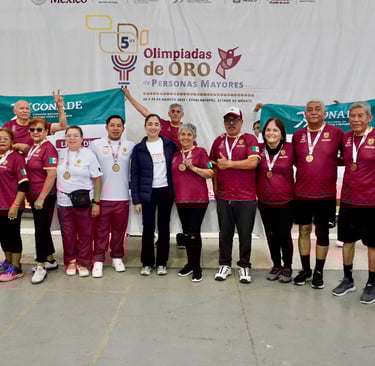 Veracruz logra medallas en Olimpiadas de Oro 2025 Xalapa, Ver., viernes 29 de agosto de 2025.- Veracruz tuvo una destacada participación en la segunda jornada de las Olimpiadas de Oro 2025, celebradas en la Ciudad Deportiva del Estado de México, en Zinacantepec, donde las y los representantes de la entidad obtuvieron varios lugares de honor en disciplinas deportivas y culturales. La delegación veracruzana conquistó un segundo lugar en ajedrez, tercer lugar en atletismo (400 metros), segundo lugar en declamación de poesía y tercer lugar en canto individual. También alcanzó el primer y tercer lugar en juegos de memoria, además de un tercer lugar en cachibol 70+, acumulando así un desempeño sobresaliente frente a delegaciones de todo el país. El equipo estuvo conformado por participantes de Las Choapas, Coatzacoalcos, Papantla, Poza Rica, DIF Xalapa y la Casa de Día Quinta de las Rosas, quienes demostraron talento, disciplina y orgullo al representar a Veracruz en este encuentro nacional. Estos resultados consolidan a la entidad como referente en la promoción del envejecimiento activo, la inclusión social y la sana convivencia, al reconocer el valor y la experiencia de las personas mayores.
